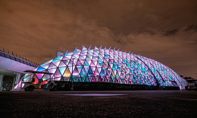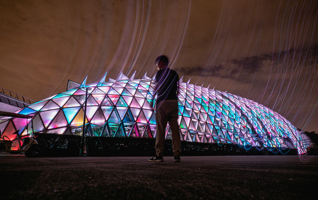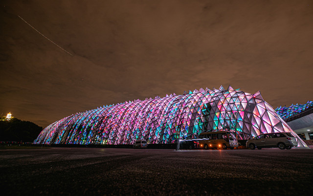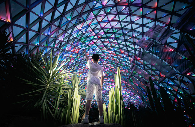繁星点点,清风徐徐,耳畔边是清脆的虫叫和洪亮的蛙鸣共同谱出的夏日交响曲,夜色斑斓,是别样的魅力。温室馆不仅是生命王国,也成为了超美的拍照地,汉堡的相册里也多了一抹瑰丽的色彩。