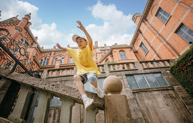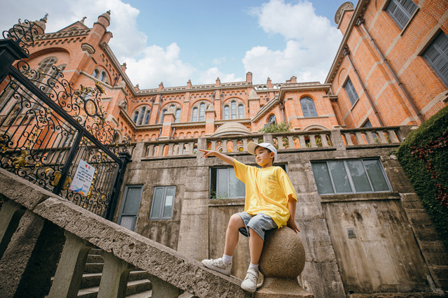 华丽的建筑带着岁月的痕迹,即使经历风雨依然耀眼夺目,天主教堂成为了佘山里一处特别适合拍照的景点,小汉堡还特地准备了拍照道具,神气得不行。不过不管在哪里拍照取景,注意安全是第一位。