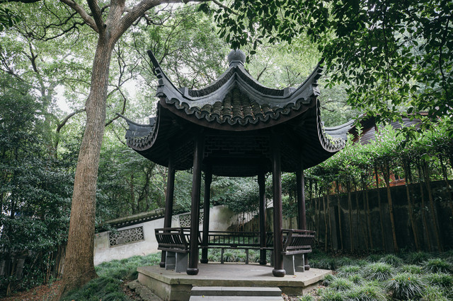401公顷的佘山国家森林公园,远离市区,绵延13公里,其间遍布名园别墅、亭榭楼阁,蔚为壮观。一座小小的亭子,庄重而古朴,在层层绿叶中,点缀出了佘山的另一种韵味。