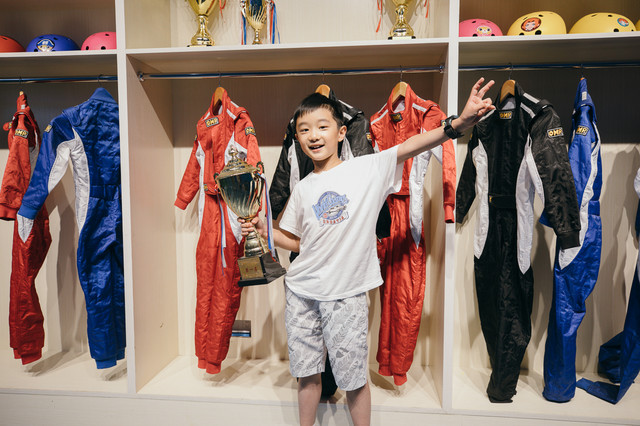 在卡丁车区还有专门的装备区,从头盔、赛车服都一应俱全,还有专门的奖杯,仪式感满满,手捧奖杯,享受胜利的喜悦,优秀的你值得拥有此刻的荣耀。