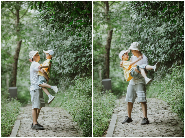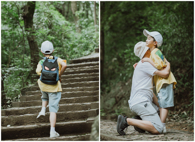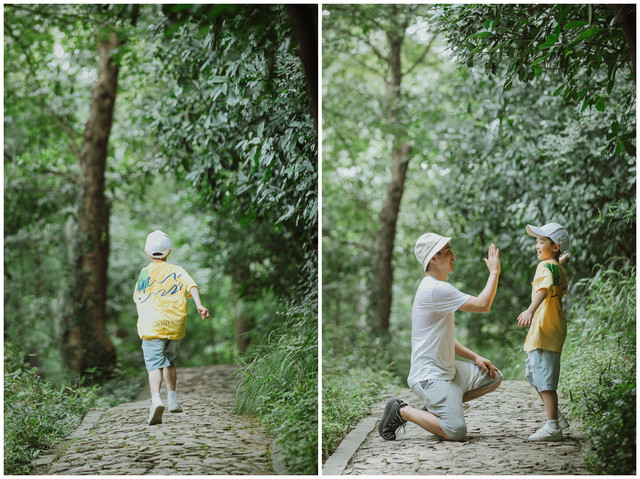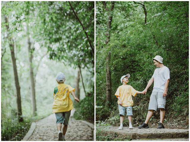 层层石阶,步步阶梯,牵着汉堡的小手行走在山林之中,是非常难得的机会,和小家伙一路嬉笑打闹,偶尔的求抱抱,仿佛回到了汉堡还很小的那个很依赖我的年纪,不知不觉,因为工作忙碌而错失的亲密也就这么一点点回来了。