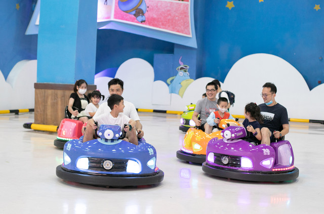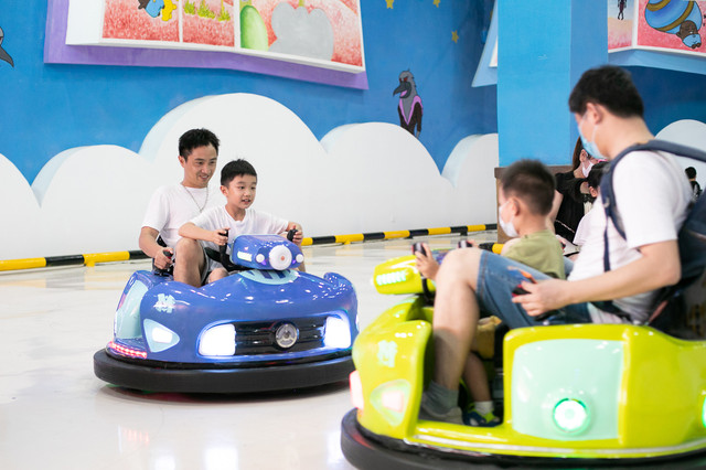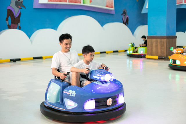 这里也有亲子互动区,比如可以大人小孩一起玩的茂险王碰碰车,跟其他的家庭一起玩,在每一次碰撞中开怀大笑,特别好玩,场地开阔,玩得十分痛快。