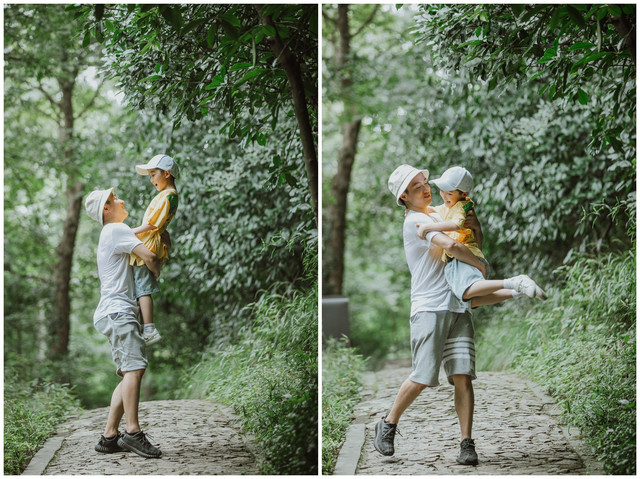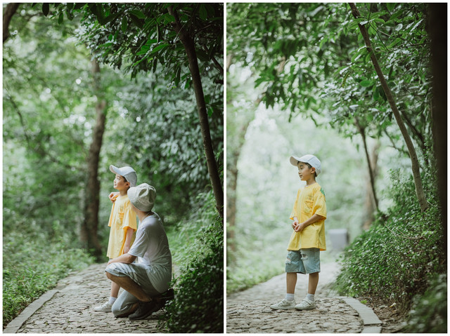 森林公园的林间步道倒是十分贴心,道路平坦又不失山野特色,虽然不算宽阔,但也足够两人并行而立。小朋友就是那么单纯,就一条路,也能玩得很开心,我也做了回小孩,两个人放肆欢笑,这山林成为了我两的欢乐场。