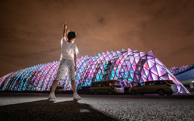 不管是馆内还是馆外,都是可以帮小朋友拍出大片感的,不过这个时候就很考验摄影技巧和设备了,如果有意向的话记得提前准备适合夜拍的摄像设备。当然,我这个小模特也很给力,表现棒棒的。