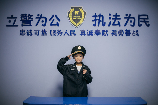 数码职业体验馆提前满足孩子们的想法,多样的场景,各种服饰,可以提前实现愿望,将梦想中的职业装穿在身上,酷哦,我的警察小哥哥。