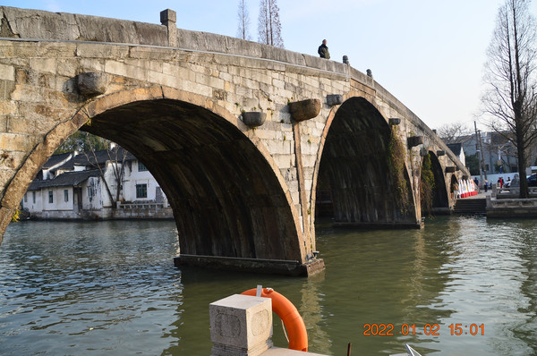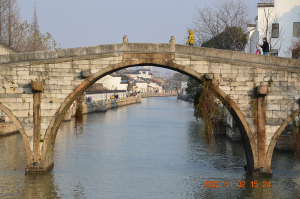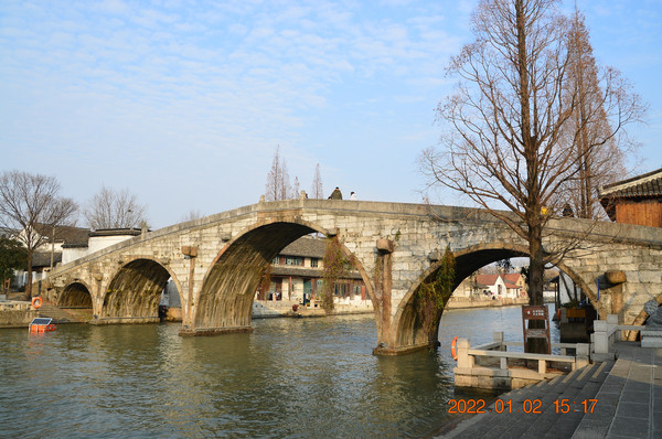 前往大仓桥。始建于明代,是一座高10米,跨度50米的五孔拱形大石桥,为上海地区著名的明代大石桥之一。大仓桥原名永丰桥,因桥南为松江府漕运仓城而得名,现为上海市文物保护单位。