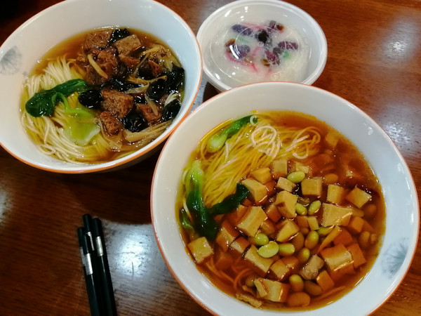高升回味面,浇头是素肉丝、雪菜。