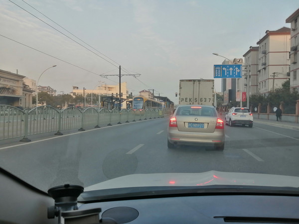 从我家到松江老城区,主要途经罗山路高架、外环高速、沪杭高速。下图为驾车经过外环高速的徐浦大桥。