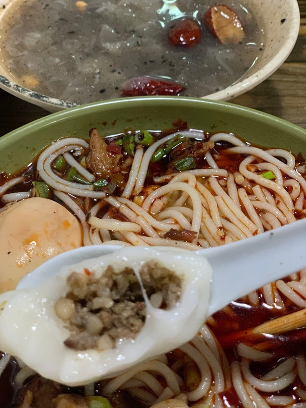 就在少水粉步行200米左右,还有一家黑龙池肉汤圆。我还是第一次吃到包肉的咸汤圆。