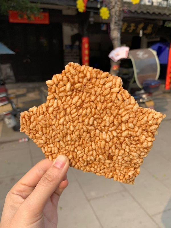 来到涞滩古镇门口处,家家户户都在油炸一种小吃,叫做米锅巴,由阴米做的,小小的一颗连在一起,有甜的和咸的两种味道,都还蛮好吃的。10元/袋。