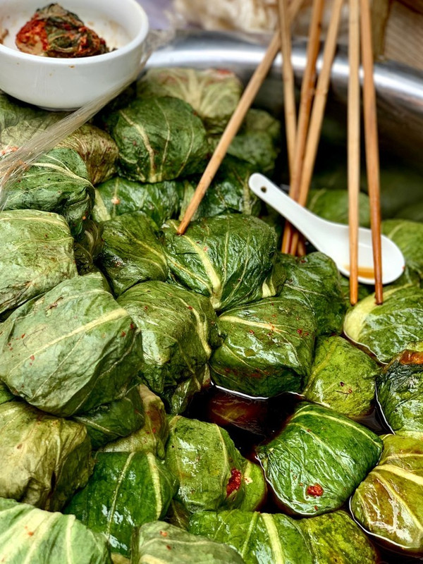 在古镇上还有一个比较有特色的是白菜做的青菜,等晒成半干后,用来包豆腐乳,几乎每个商贩都在卖。竞争好强烈啊!
