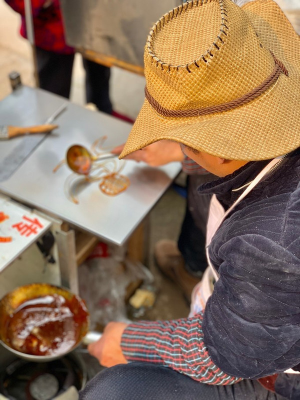 还是很喜欢小时候这种转盘转到啥形状,现场作画的糖关刀。5元/次。