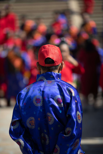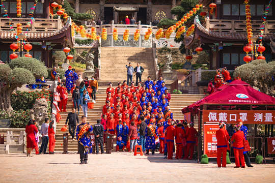 祖庙的门口很热闹,一打听,是一族人在自发祭祀妈祖,女子着红衣梳妈祖头,男子着蓝袍,果然是自古红蓝出CP。