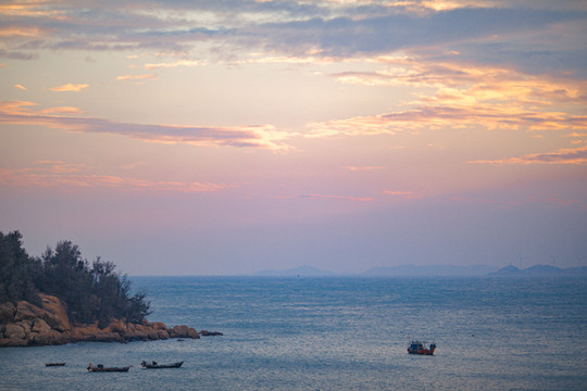 湄洲岛在秋冬之时,天气格外的通透,视线里除了大海蓝天,就是远处的一艘艘渔船。