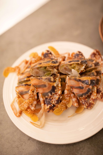 清洗,去沙,切片,摆盘,长长的桌子上摆满了时令海鲜。如今正是螃蟹的季节,又怎么舍得放过这样的机会。