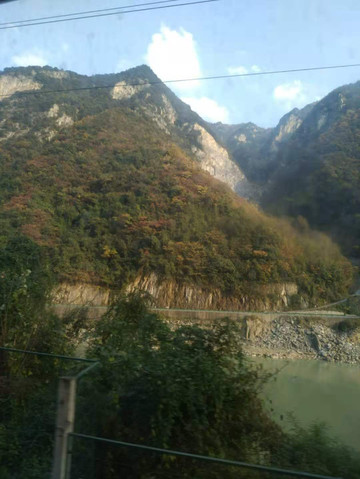 这就是传说中的宝成铁路,中国第一条电气化铁路,就是教科书上那条,遇河搭桥,遇山隧道,中国铁路历史上的奇迹,有时候我蛮佩服上一代以及上上代,真的是纯苦,不含杂志的苦,有时候为了理想信念活着,精神高于物质的时代,很难想象沿途车站,那种电影里的,类似于公交站的站牌,车上大多也是些沿途的居民,坐在我对面大包小包,浓浓的甘肃口音,我没听懂啥,他一问我啥,我就傻笑缓解尴尬,吭哧吭哧就到了徽县站,一路上过隧道手机全无信号,我同学他爸开着车来车站接,那乡道,九弯十八绕,要开到对面山,下山再上山,之字路,终于到了县城,我以为县城会很差,不过还蛮好的,听同学他爸,“耶”/这是父亲的称呼,我开始理解成“爷”,“达”/这才是爷爷的称呼。我同学当晚和旧友聚会,带上我一起去,水盆羊肉,就是长安十二时辰里的那道菜,别说,膻味一点也不重,鲜,好吃,还有其他几道菜,一个像蕨菜的啥,不懂,羊肉,饼子那些,也不管菜名啥就是吃,吃饱了就回我同学家,带了新会橘饼和广州腊肠给我同学家,晚9点多,我同学说去接她妹,因为他比较胖,我在想他妹估计也是个胖妞,在徽县一中门口等放晚自习,他妹一头短发,黑色套头衫,黑色运动裤,黑色运动鞋,两手叉衫前口袋,一蹦一跳出来了,蛮可爱的一个小姑娘,有点像假小子哦。入夜,和同学睡一铺床,今天不是守寡的一天。
