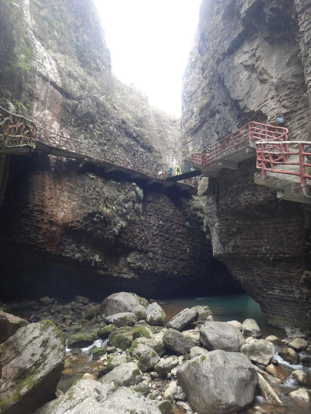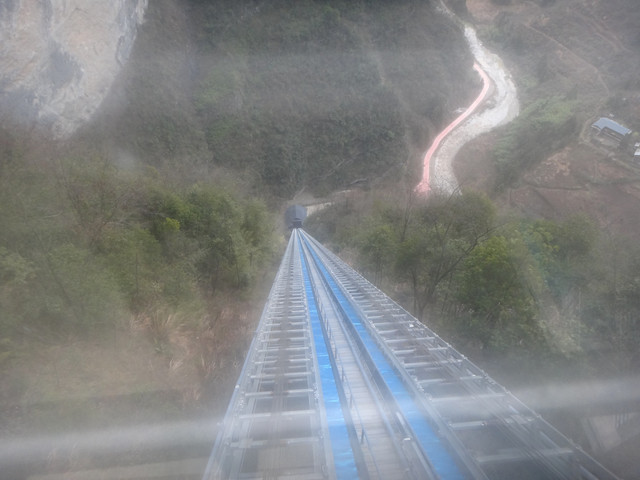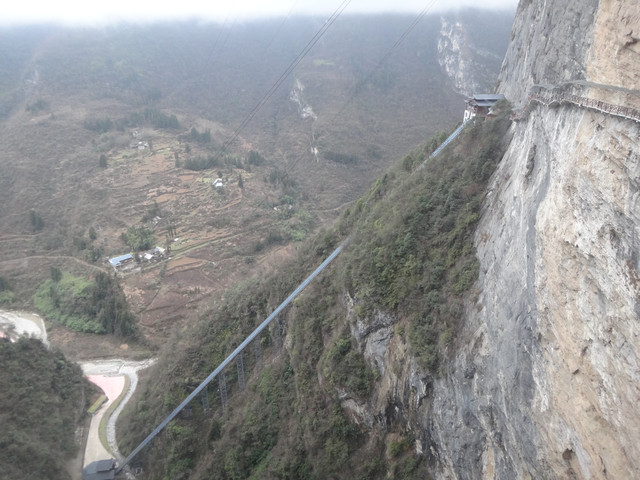 我们选择步行下,电梯上。从步行道向下可以欣赏鹿院坪全景。