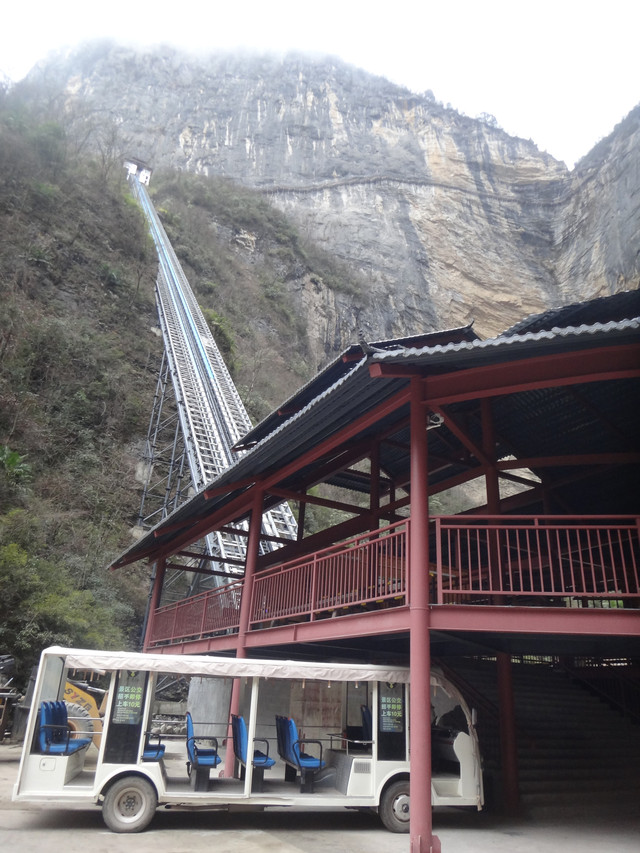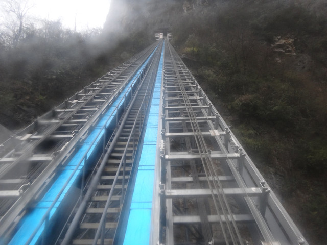回程乘坐的电梯垂直高度300米,长度380米,夹角47度,号称世界上最长的斜行观光电梯,堪称震撼。