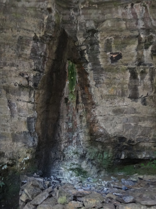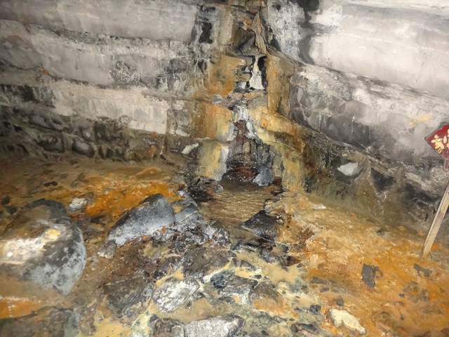 硫磺厂时期,洗矿的废水废渣直接排入河流地缝。关矿已约60年,至今仍留有大自然被破坏的痕迹。