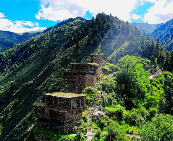 亦称“藏族民居之王”,修筑于元代,高约25.6米,共九层,集安多、嘉绒、康巴三大藏族传统民房建筑特色于一身,是藏区发现年代最久、层数最多的碉房结合古藏民居,国家级文物保护单位。