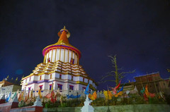 占地2.5平方公里,米拉塔、彩塔林塔庙结合,米拉塔高耸雄伟、构造独特,相互辉映,旁有成百上千座形态各异的彩塔,蔚为壮观!