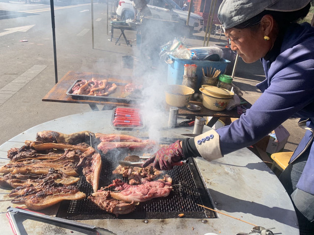回来路上看到有一条街,就在公路边上,专门烧烤土猪肉、土豆。下车去品尝了一下,味道不错,吃的人很多,感觉比昨天李小肠味道还要号,目测以本地人为主。两大块土猪肉,只要30左右,是地道的土猪肉,在浙江这边已经很少能吃到这么美味的猪肉了。