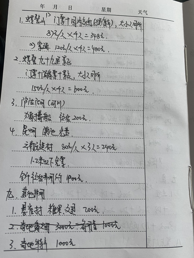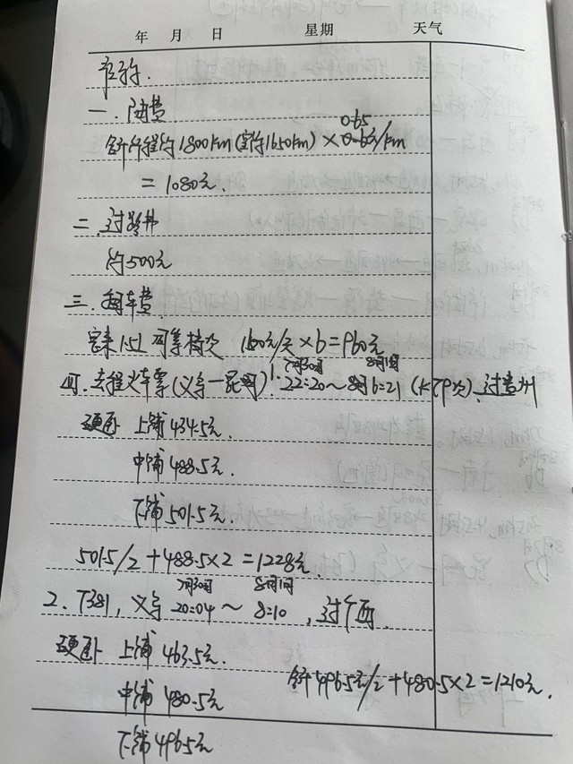 这辆小白陪伴了6天时间,总共行驶里程约1800公里,住宿费由于疫情原因,跟之前攻略档次酒店比省下来约500元,螺髻山未去节约400元,昆明民族村未去节约250元,悬崖村未上去节约200元,返程飞机改火车节约3700元左右,餐费比预计多花费200元左右,总花费一家四口连路上时间9天(含火车时间)总共约12500元左右(含1500左右伴手礼)。