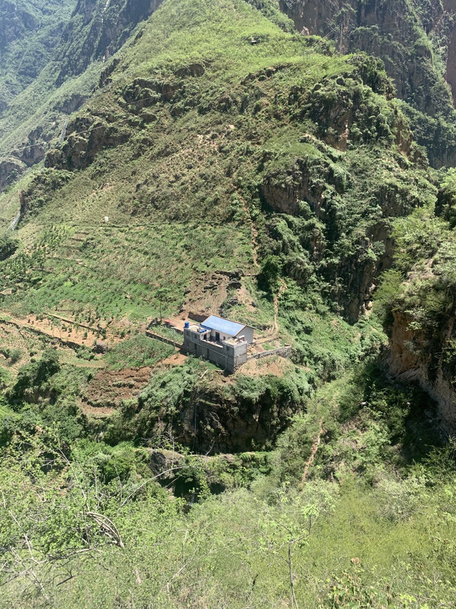 下午一点钟赶到悬崖村,结果由于疫情原因不开放。想着已经到村口了,总要让小孩感受一下天梯,买好装备主要是手套、水,临时换到悬崖村对面村庄也有一条天梯。其实天梯在凉山州比较普遍,只是悬崖村经过媒体报道才出圈了。出发去爬天梯,只上了两个天梯平台,就撤了,实在是露天太暴晒了,另外也高估自己了,踏在空空的两个钢管上看下去,恐高症爆发了,脚都发软了,确实当地老百姓出现太难了,也不安全。