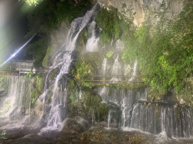 下午到九十九里温泉大瀑布景区,建议住在新的酒店普格洋泉大酒店,就在景区门口,非常方便而且由于是新开的,附近是最好的酒店了。这里吐槽一下,吃的话还是有点不习惯,除了烧烤土猪肉。温泉确实很不错,也无愧于世界最大挂壁温泉瀑布,里面还有好几个洞穴,都是温泉,很爽。它这里可以让你真正体会到冰火两重天,一边是温泉一边是山泉,非常刺激。这个景区家里几个宝贝回来后都还意犹未尽,什么时候冬天过去可能会更爽。刚看到新闻,凉山州所有A级景区到2026年对浙江身份证的居民免免门票,下次有机会还要再打卡。景区及周边环境还不是很好,期待下次过来时会有新改观,毕竟这地方时聚宝盆!