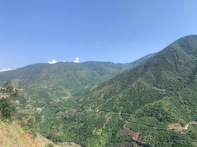西昌到悬崖村现在还没通高速公路,只有国省道、县道通达,所以基本在翻山越岭,车道宽度也基本只有两车道,而且路线弯道急而且多,需要有一定的驾驶技术和经验。今天去的路上,就碰到运输风力发电的叶片运输车,堵了半个小时。沿路的风景还是不错的,据了解目前凉山州是宁波对口支援的,相信在宁波的帮助下和凉山州自身的努力会越来越好。在路上,只看到有新的扶贫安置点,不过碰到的当地老百姓感觉还是精气神稍微欠缺一点。