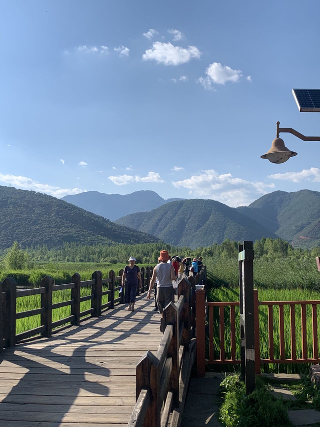 泸沽湖非常适合夏天过来,风景好而且气候宜人,当地海拔在2700米左右,只要不是中午时分在外面暴晒都是凉爽的。我们居住的民宿鹊桥山庄要赞一个,就在草海景区边上,老板一家人都很好,给我们免费升级了湖景房。晚上也就地解决,老板烧的石斛土鸡汤相当OK。下午也去逛了草海景区,走路几分钟,走婚桥、草海,这边开发比较杂乱,到处在造房子,而且没有规划,感觉泸沽湖这么好的宝藏掉价了。