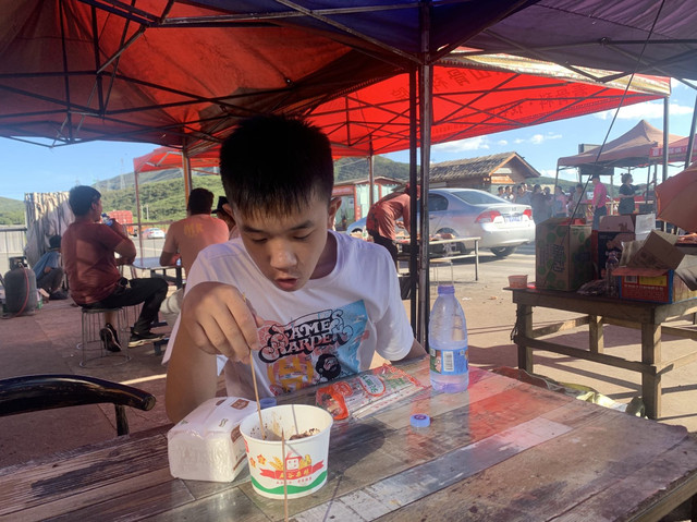 早上泸沽湖游玩结束,马上直奔九十九里温泉大瀑布景区,路程260公里左右,又是6个小时左右的车程,又是山路十八弯。路上又遇到运输风力发电叶片的车子,又是堵车,也好,国道上购买了新鲜的核桃,10元一斤,也第一次见到了核桃树,宝贝们还是非常兴奋的。