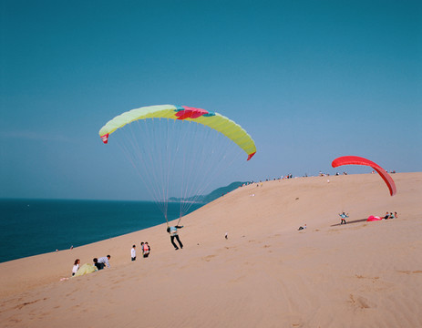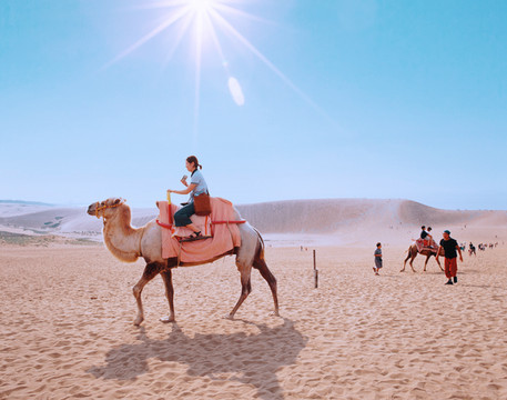 在沙丘上你也可以选择骑骆驼漫游沙丘、驾驶沙漠自行车或是体验滑翔翼、滑砂等娱乐项目。