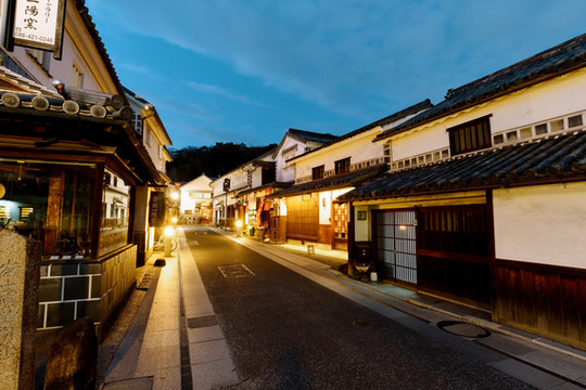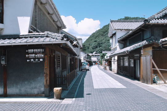 已经有350年历史的竹原市,曾经以制盐和酿酒而闻名。这一区域的主要街道为本町通,道路两旁是传统的木制房屋,灰泥墙、格子外框和烧制的粘土屋顶瓦片式的传统建筑,还完好的保存着,很多都是当年商人自家的房子,有的建筑甚至可以追溯到江户时代(1603-1867 年)。