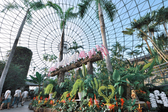精心培育与设计后的花园展区,像是“花卉巨蛋”、“展望回廊”、“花之丘”等,五颜六色的鲜花在一年四季竞相开放,到处都开满了色彩鲜艳、十分漂亮的鲜花。而且冬天还会设置景观照明,可以欣赏到灯光和花朵相互映衬的美丽景色。