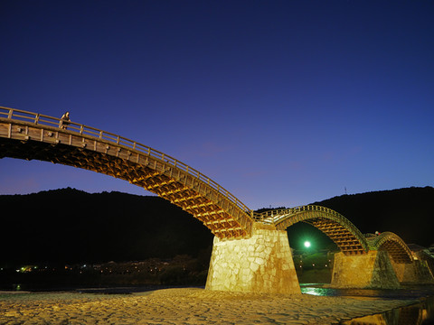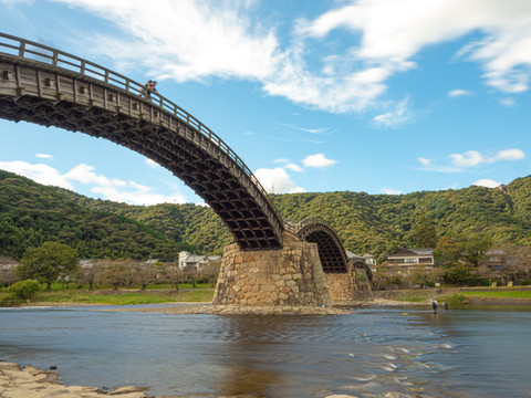 从汤田温泉驱车前往大约1.5小时,我们来到了锦带桥。这里是日本代表性的木造桥梁,日本三大名桥之首。