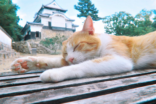 除了美景之外,这里的还出现了新的城主:“猫城主三十郎”。原本是一直家养的橘猫,因为走失到城中,最后在猫主人的许可下,让它成为了“城主”。由于它可爱的样子可以消除游客们登城的疲惫,因此很受大家的喜爱呢。