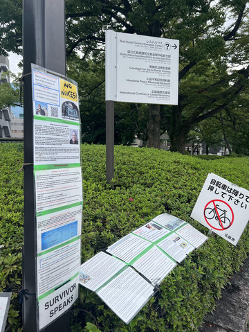 原爆受害者在穹顶旁表达了废除核武器的强烈愿望。