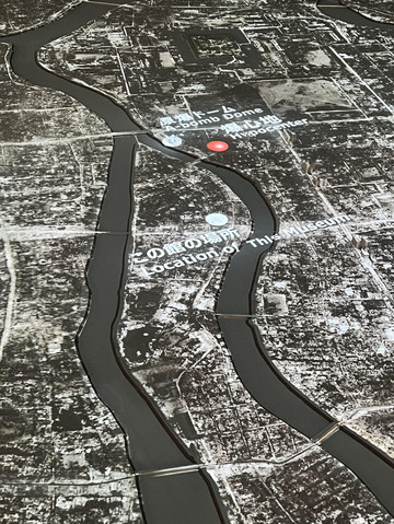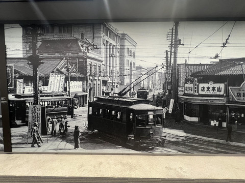 进入资料馆后,首先映入眼帘的是被轰炸之前的广岛,一片繁华的景象。