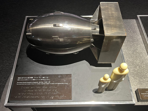 投放于广岛的“小男孩”原子弹模型和投放于长崎的“胖子”原子弹模型。