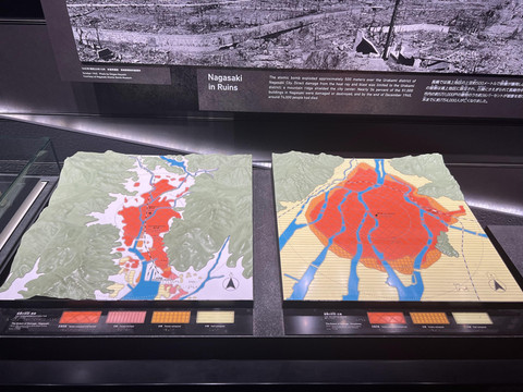 展厅最后的部分展现了核武器和核试验的危害,希望广岛和长崎是历史上唯二遭到核武器攻击的城市。