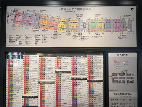 坐车到达市中心后,前往天神地下街。一开始看指引图吓了一跳,以为大得很,实际逛下来还可以。