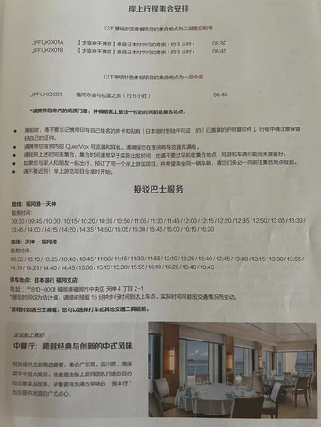 今天船方安排跟团游的客人前往太宰府天满宫,这个地方对自由行的游客不太友好,主要是路途太远,而且作用类似于我国的孔庙,我们目前没有相应的需求,所以一开始就没打算去。还好船方提供了到市中心的接驳车,而且班次特别多,15分钟就有一班。
