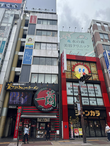 一兰拉面,日本的连锁拉面店,在福冈卖的拉面有一款是用方碗装的,留点遗憾给下次吧。