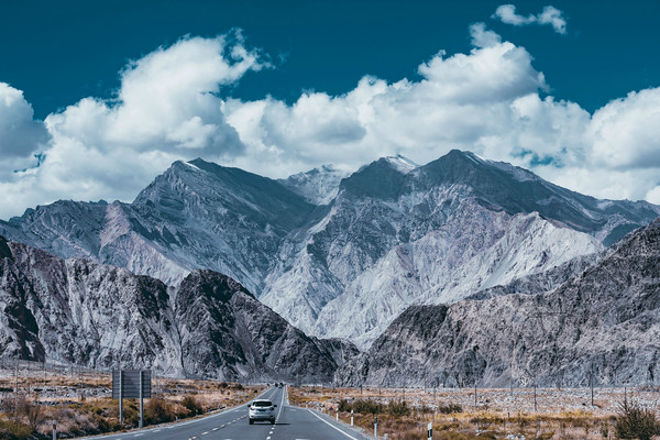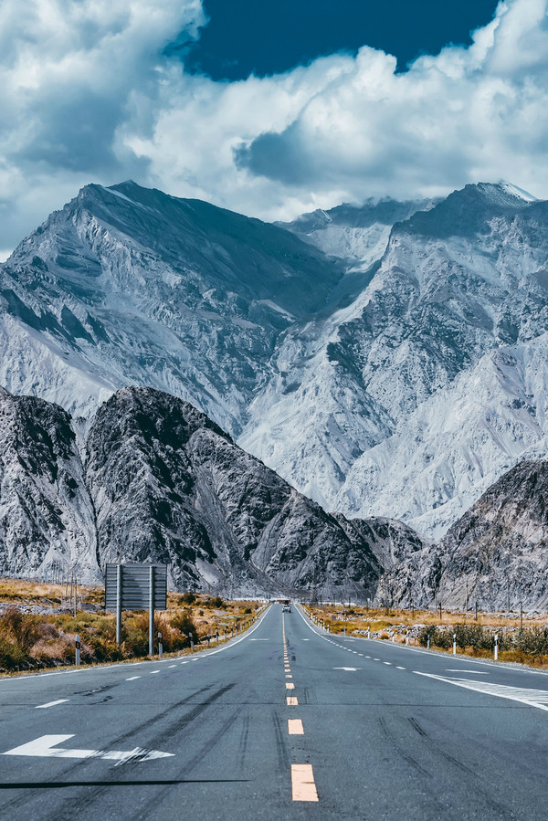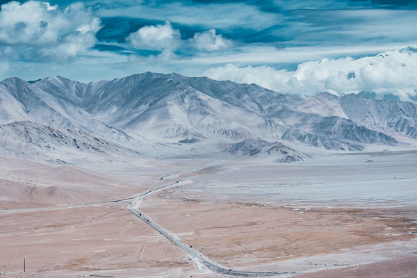第四天,我们的路线是喀什—白沙湖—卡拉库里湖—塔什库尔干县。今天游览的点虽然说比较少,路程也遥远,但沿途每一处都是一片风景!新疆的一切景致仿佛都是磅礴大气的,高大的山,大多的云,全然不同于低纬度地区的良山秀水。早晨起来便觉天气爽朗,在这样的天气里游览自然再愉快不过。笔直的公路向山那边延申,我们也就沿着这公路开始今天的游览。
