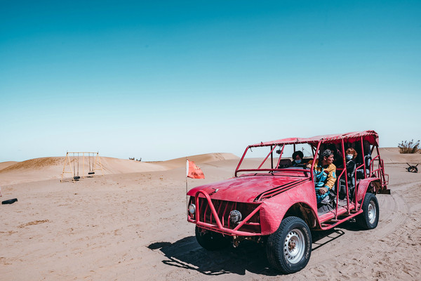 我们乘坐了沙漠越野车,准备肆意驰骋。越野车极速飞驰,溅起的黄沙飞扬,扬起的黄沙甚至越过车身,把越野车过些在黄沙里,场面极为震撼。像这样畅快淋漓的玩儿上一场,少年豪侠之气喷薄欲出。