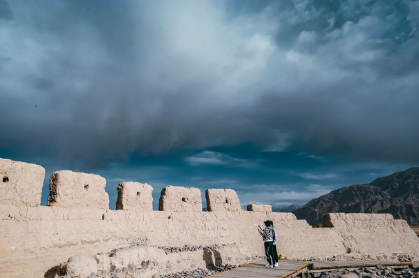 很喜欢古老的东西,古老的事物、古老的建筑、古老的人,不光是喜欢他们的安静恬淡,更是欣赏他们在经历风雨后沉淀下来的历史厚重感,喜欢去探寻这份古老。其实这也像人生一样,我们总会发现一些曾经经历过大风大浪的人在年长后呈现出特别安详的形态,这并不是时间磨灭了他们的锐气,而是他们的心态发生了改变。老人们常说的“平平淡淡才是真”,也并不是提倡一辈子过平淡的生活,而是在经历了很多事情之后反朴归真,归于平淡,但正因为他们经历过,他们才会呈现出独特的气质。如今新疆这些古城都已经繁荣不在,有的留有些断壁颓垣,有的早已被黄沙掩埋,永远沉寂在茫茫黄沙之下,但它们毕竟是古丝绸之路上重要的枢纽,他们曾经的辉煌和他们所做出的贡献,是无论黄沙还是时间永远都泯灭不了的,如今我们开展新的“一带一路”,这些古城很有可能焕发生机,在做出新的贡献。而在塔克拉玛干沙漠,我们也洒下了青年的壮志与豪情。