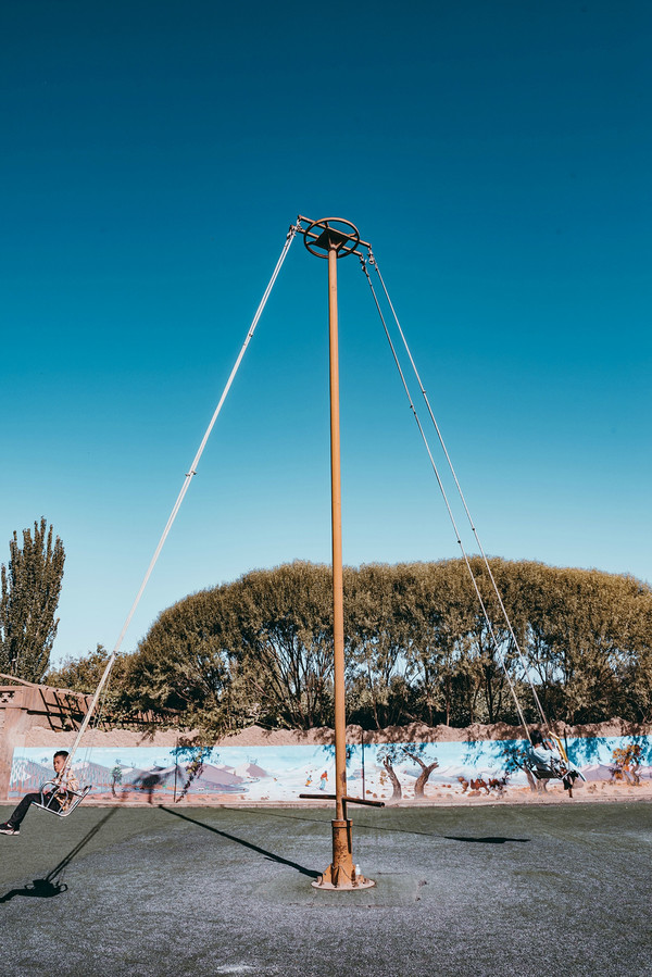 在这里我们还参加了有趣的活动——萨哈迪,这是维吾尔族古老的民族传统体育游戏之一,游玩时,两个人推动轮干使木轴转动,带动绳端两人旋转,开始时我们看了简介也不太敢去玩,正好有热情的当地居民指导我们。欣赏完精美的画作之后我们返回喀什市。