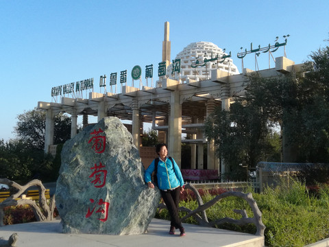 在吐鲁番郊区,像葡萄沟这样的村落到处皆是,可以免费参观葡萄园,品尝葡萄要比葡萄沟便宜许多。我们没有进葡萄沟,仅在景区门前作短暂打卡,并立存此照,当即选择离开。乘坐旅游专线公交5元/人+徒步2公里返回酒店。此行葡萄沟人均交通费13元,是吐鲁番旅游花费最少的景区。