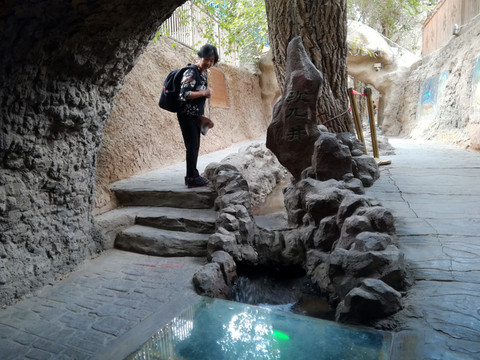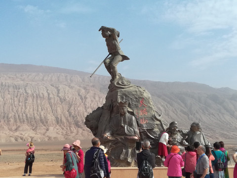 你站在景区的任何位置,360度转动身体,就可将火焰山一览无余,围绕地面景区走一圈,大约最多10几分钟。我们从地面景区出口,走到铁扇公主和牛魔王的塑像前,也就再没有看点了。于是,我们当即离开火焰山返回酒店,去往下个目标地,吐鲁番的坎儿井民俗园。